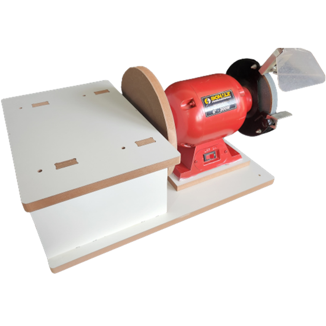 Uma bancada versátil que irá transformar seu motor esmeril em uma estação de lixamento para dar acabamento e desbaste em diversos materiais.