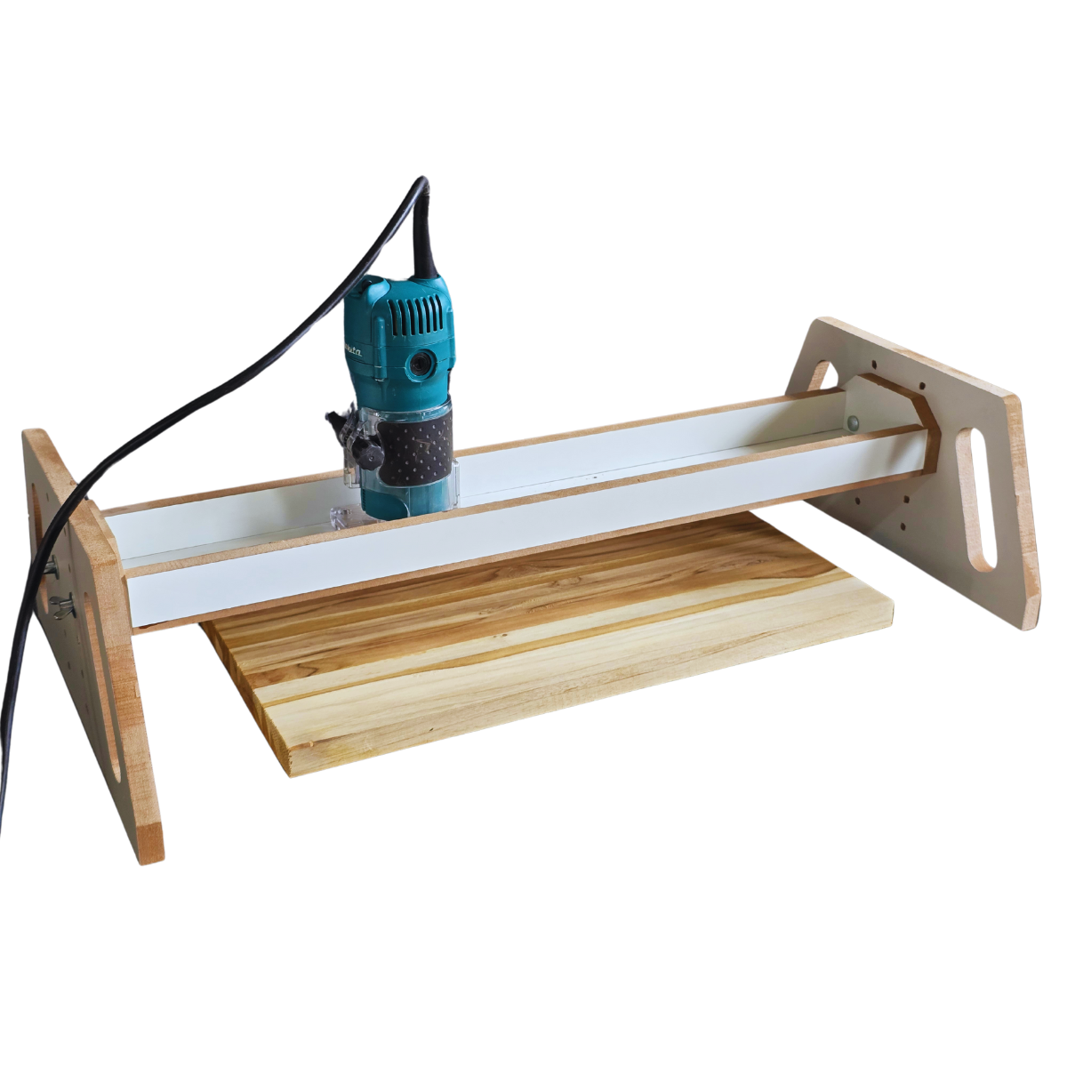 Um gabarito funcional para desbaste, nivelamento e aplainamento de madeiras, tábuas e bolachas de madeira.