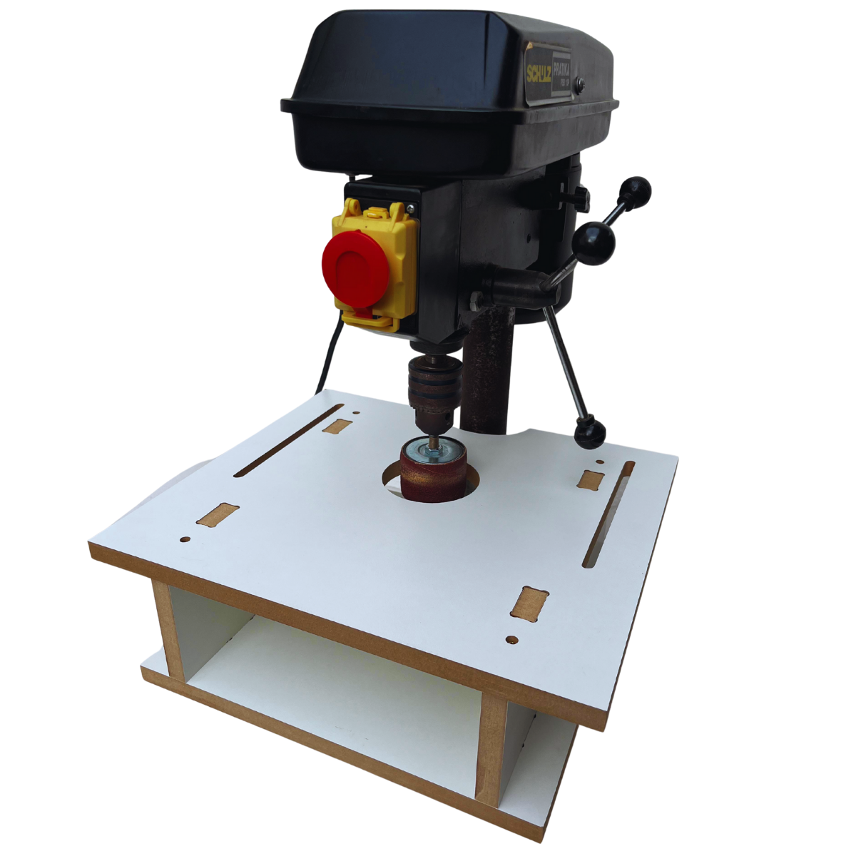 Suporte de lixamento para furadeiras de bancada das mais diversas marcas. Isso mesmo. Um suporte útil e versátil para sua oficina, seja para hobby ou uso profissional.